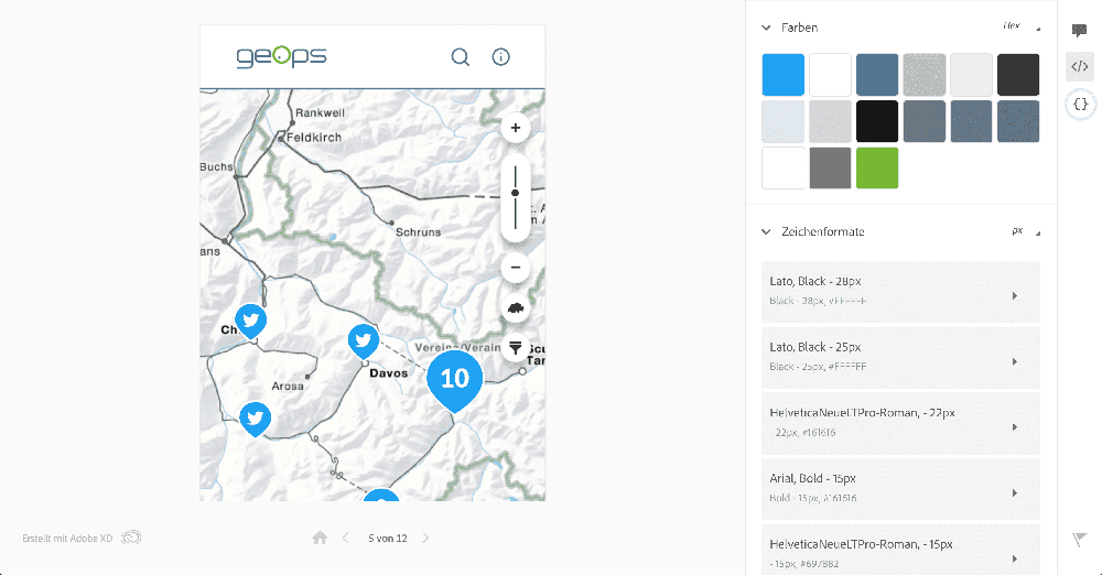 Ich beschäftigte mich fortan mit dem Frontend der Railview App, während meine Kollegen den Backend-Dienst und eine Verwaltungssoftware zur Auswahl der relevanten Tweets entwickelten.